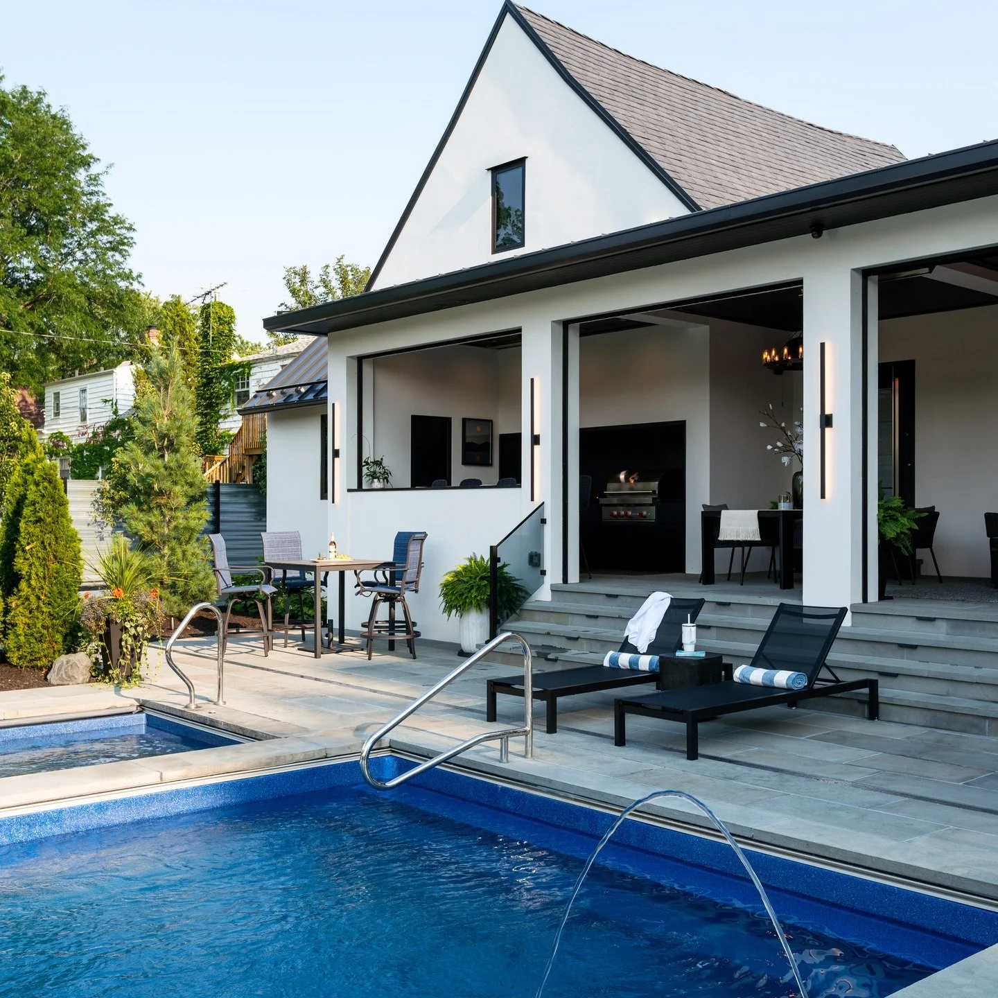 Photo - @vandegang_arch.  #architecture #chicagoarchitecture #pool #stucco #whitehouse #backyard #design